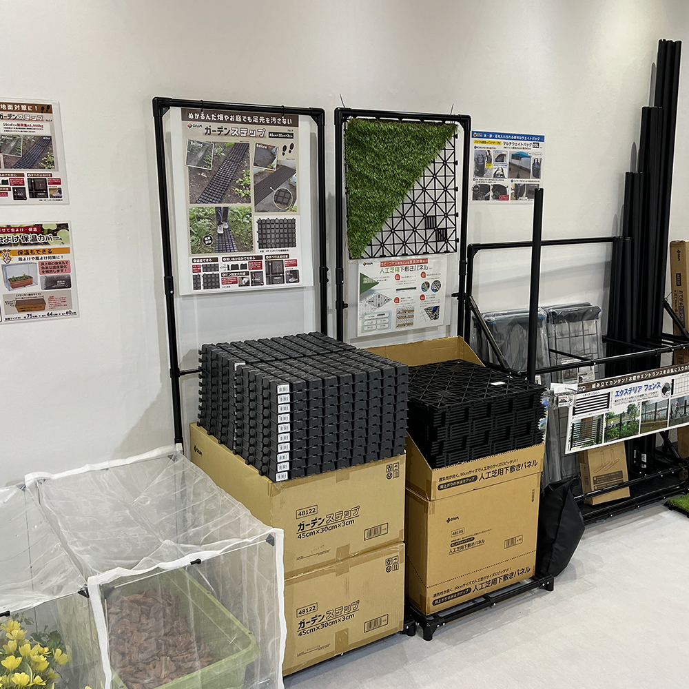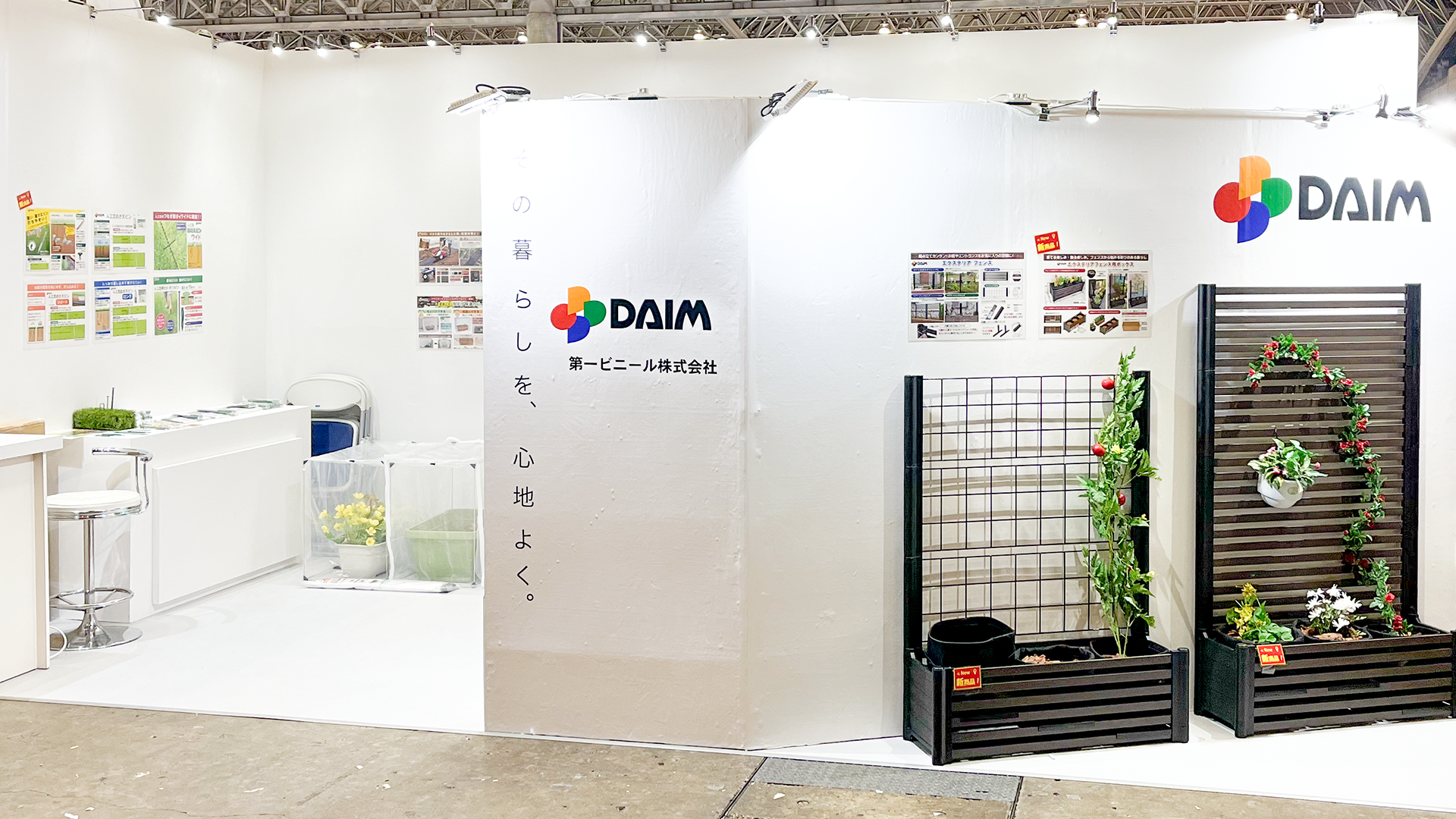 DAIMではのお庭造りに役立つ商品を中心に、今年発売した新商品、現在開発中の商品などを展示。
