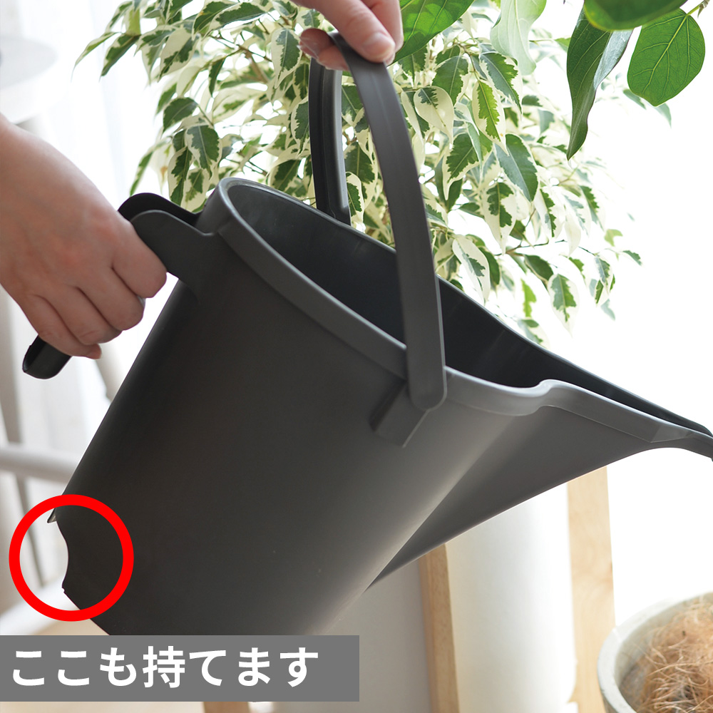 重かったり、遠くの鉢に水をあげる場合にも両手でしっかりとジョーロを持つことが出来ます!