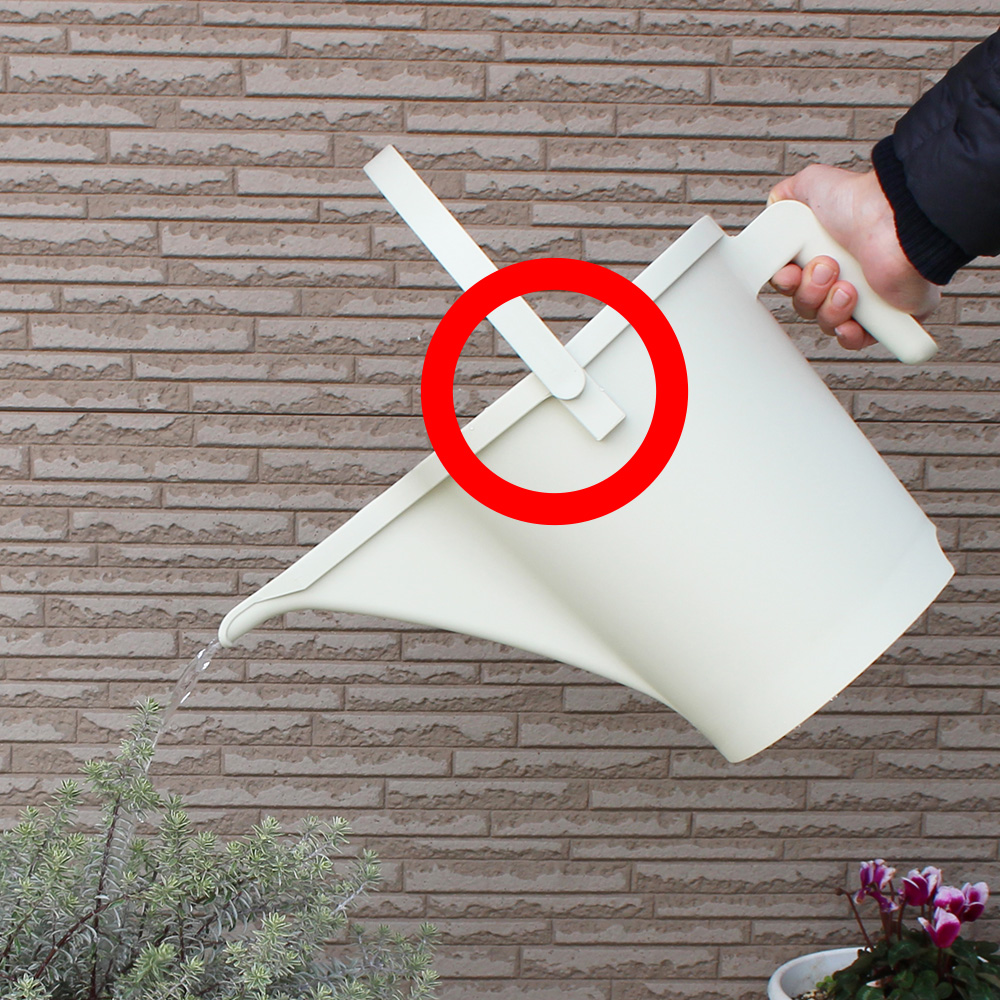 取っ手にロック機能がついているので、水やりの際に本体を傾けても取っ手が落ちてきません!