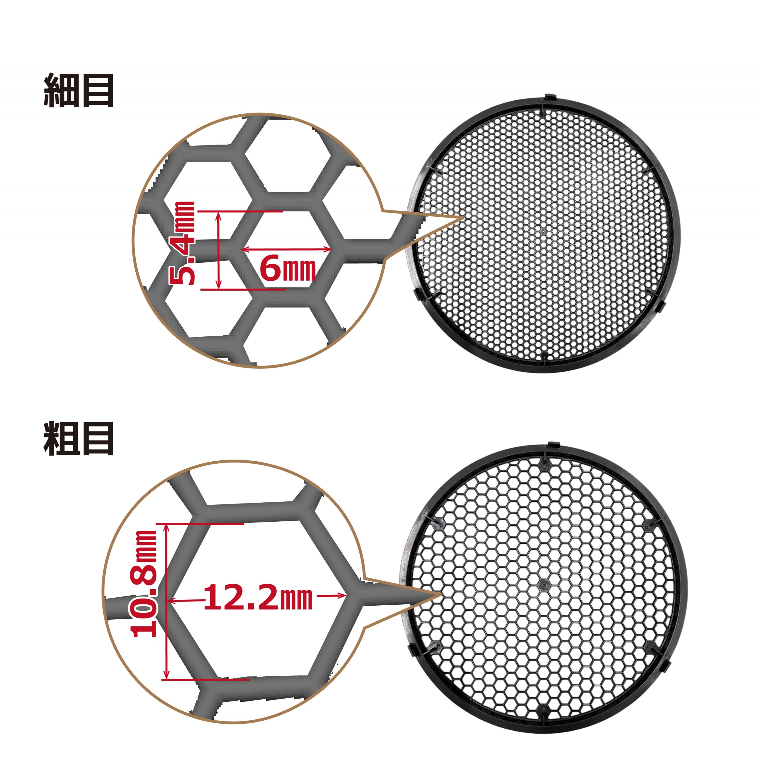 一般的なふるいは四角形の網目ですが、ふるいの達人は六角形の網目(ハチの巣形状)を採用!