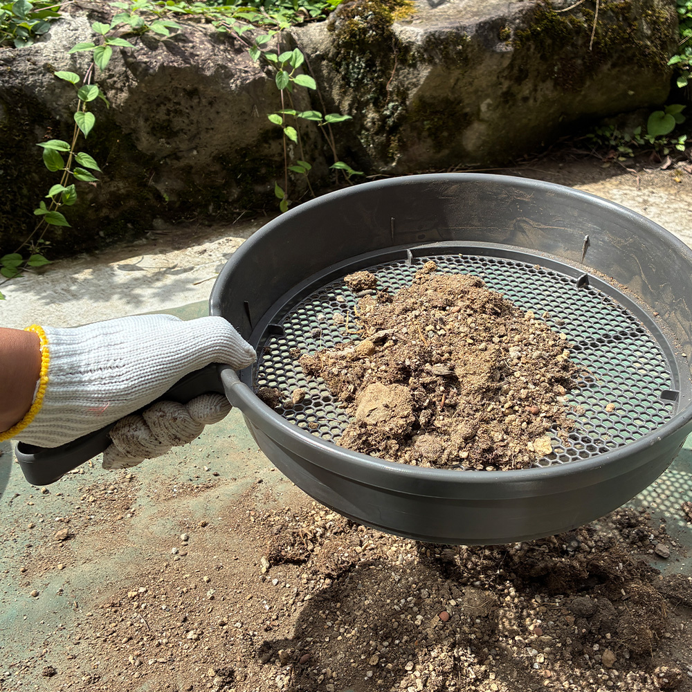 がんがん土をふるいにかけて、通気性・水はけを向上させ、土壌を整えましょう!